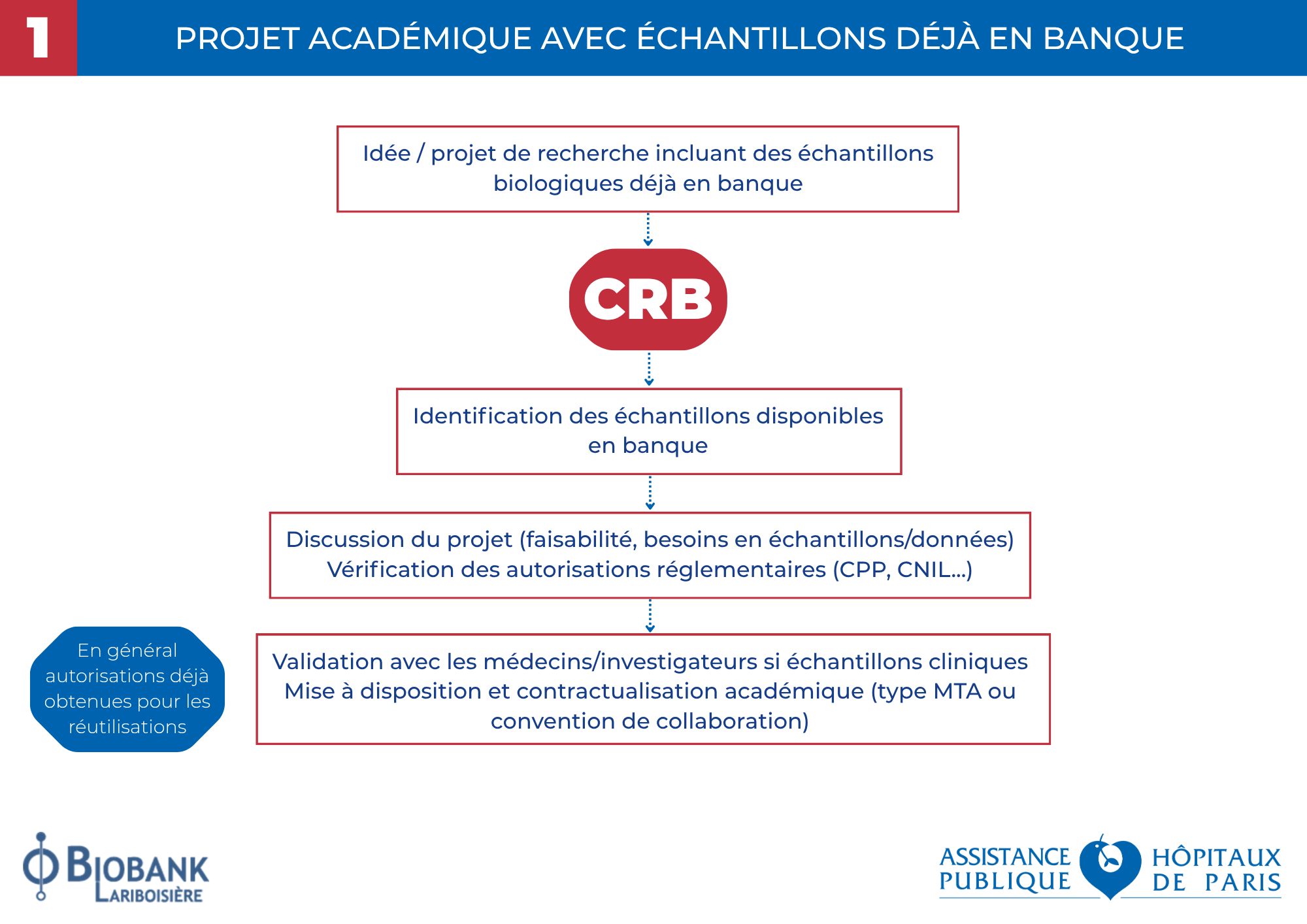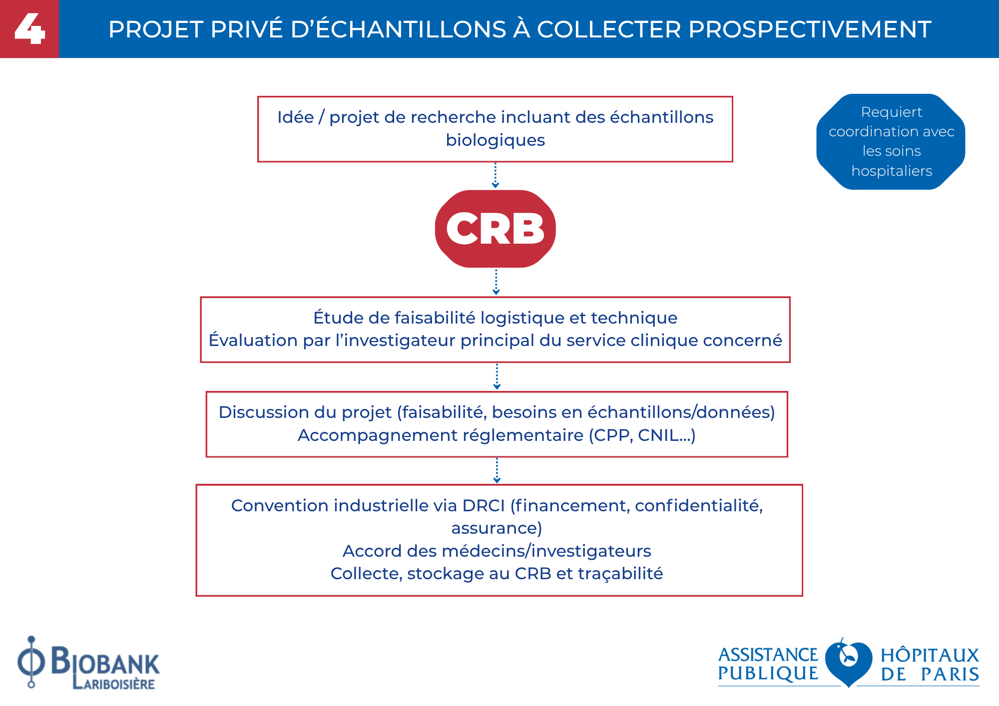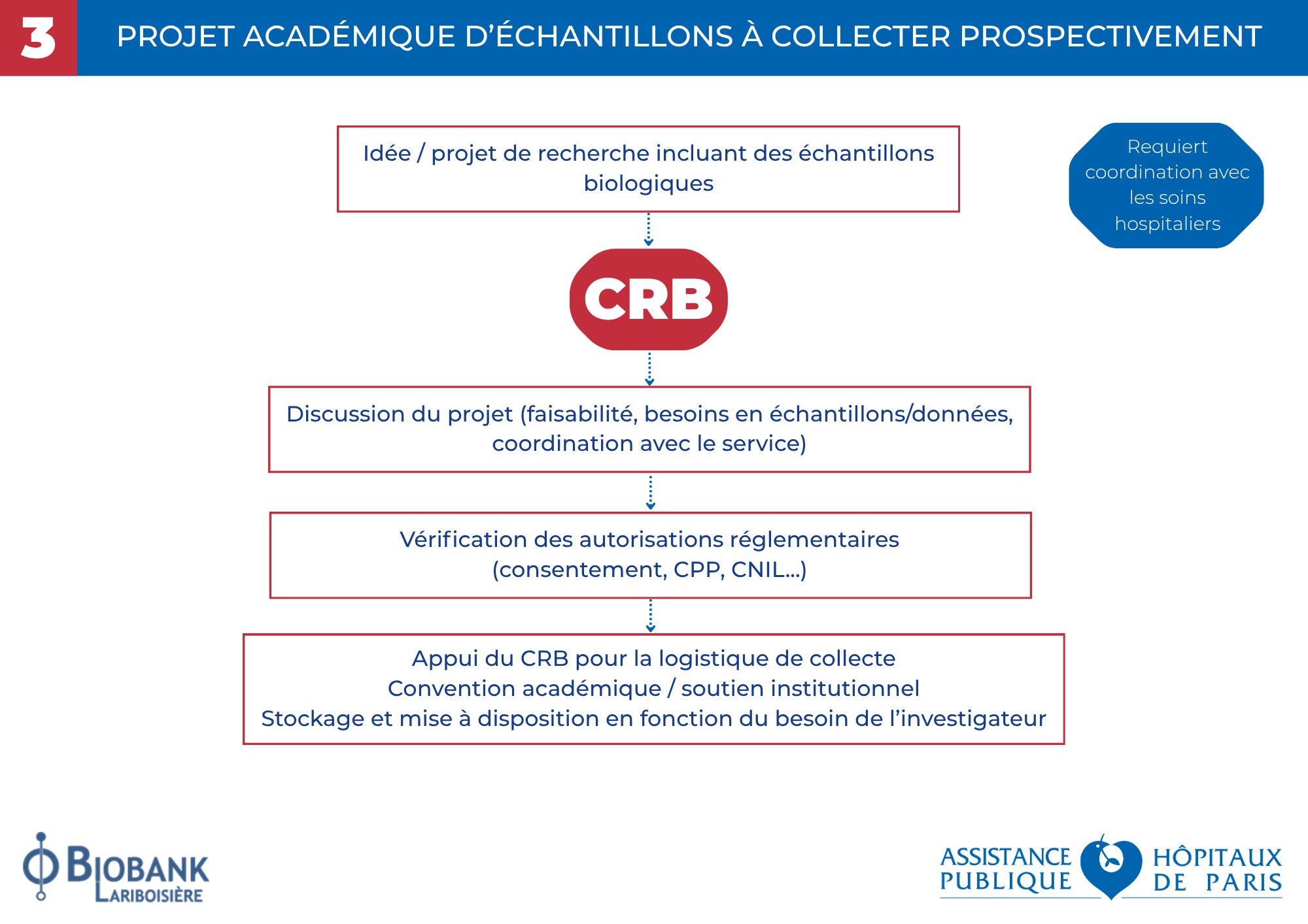 Le CRB est responsable de la gestion des échantillons biologiques sur un périmètre comprenant les hôpitaux Lariboisière – Fernand-Widal et Saint-Louis. Le stockage et le traitement des échantillons est réalisé sur un site unique, Lariboisière, afin de standardiser et d’optimiser les processus. Les échantillons pris en charge sont répartis dans des filières spécifiques, à savoir les Fluides Biologiques et Acides Nucléiques d’une part, et les Tissus d’autre part, permettant une gestion adaptée aux besoins des projets de recherche.